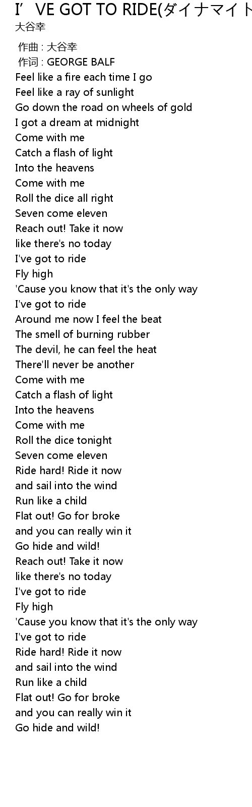 | Song | I’VE GOT TO RIDE(ダイナマイト・シゲ) |