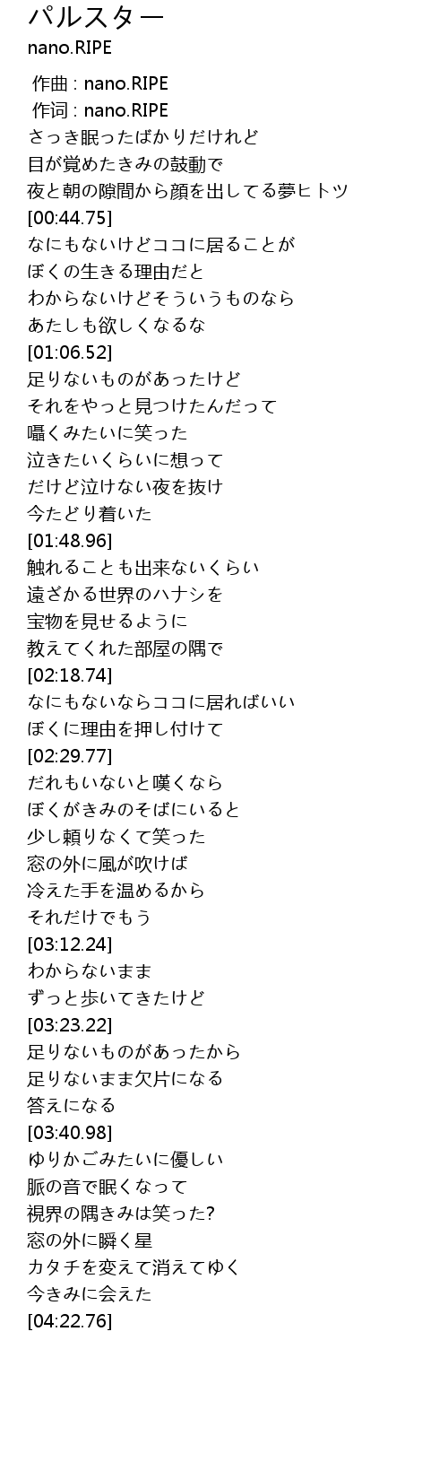 | [00:00.00] | zuò qǔ : nano. RIPE |