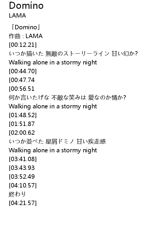 | [03:12.02] | いつか並べた 星屑ドミノ 甘い疾走感 |
