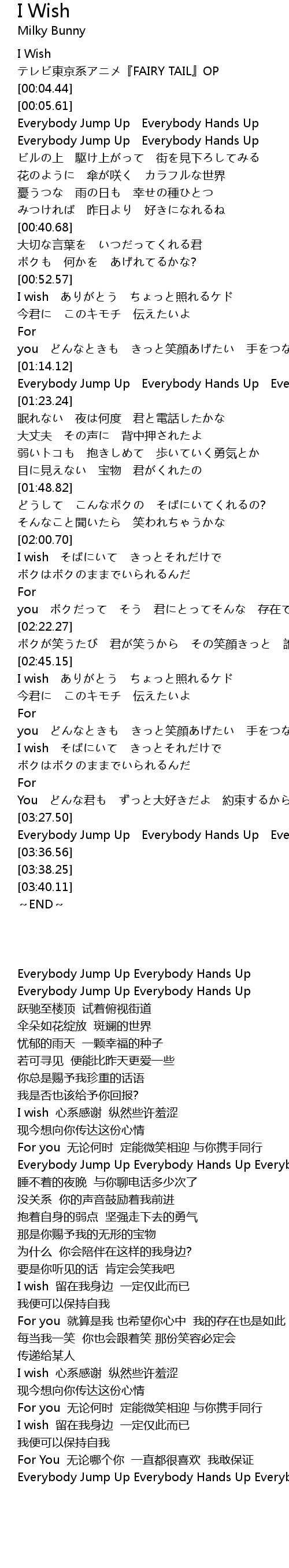| [00:53.57] | I wish ありがとう ちょっと照れるケド |