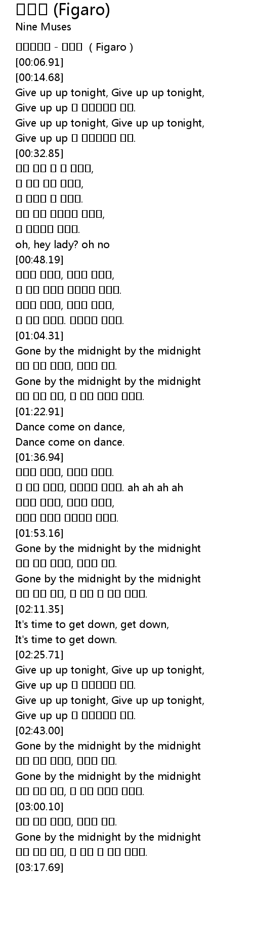 | [00:00.62] | 나인뮤지스 - 휘가로 (Figaro) |