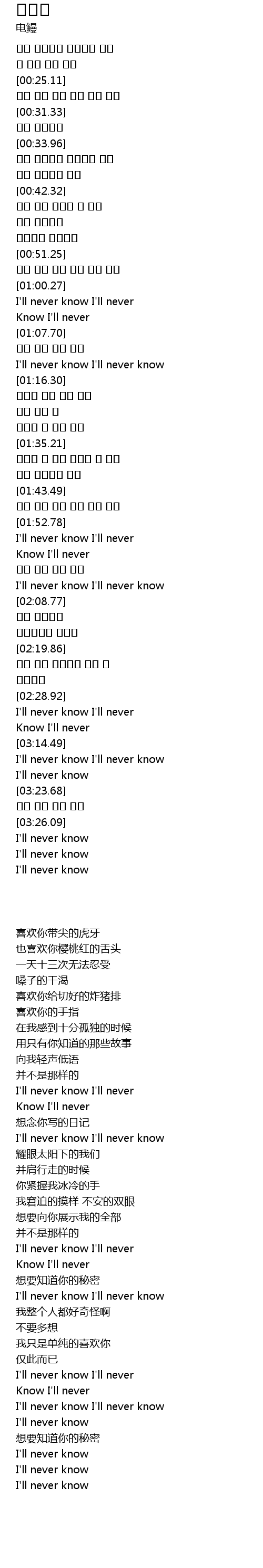 | [02:00.57] | 알고 싶어 너의 비밀 |