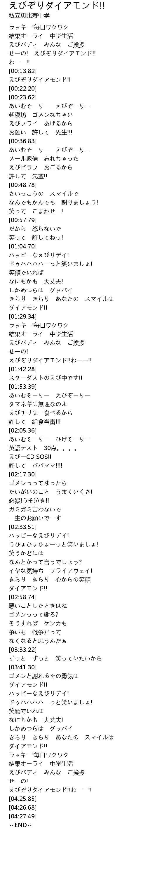 | [04:22.79] | えびぞりダイアモンド!!わーー!! |