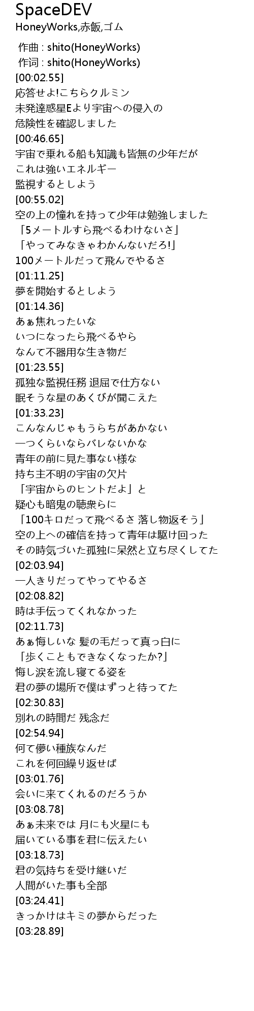 | [01:42.59] | 持ち主不明の宇宙の欠片 |