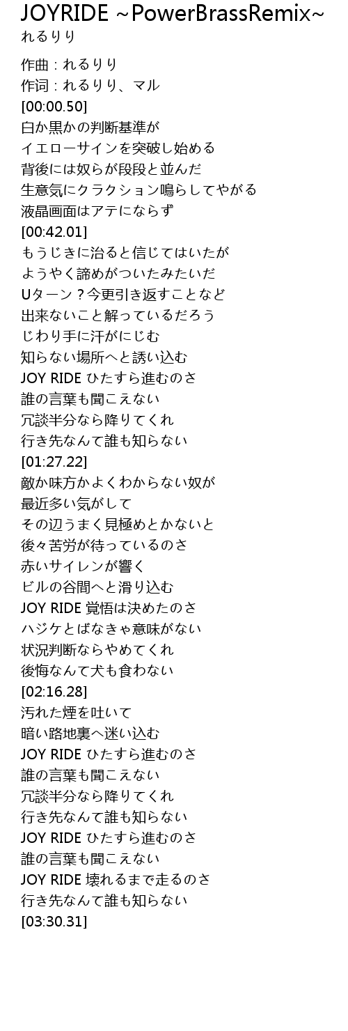 | [03:19.57] | JOY RIDE 壊れるまで走るのさ |