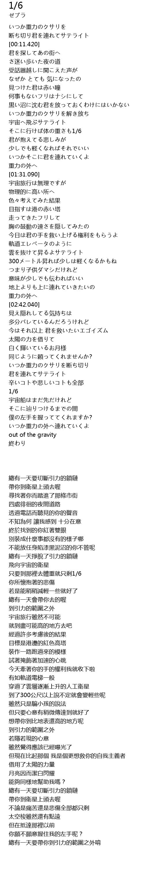 | [01:03.740] | そこに行けば体の重さも1/6 |