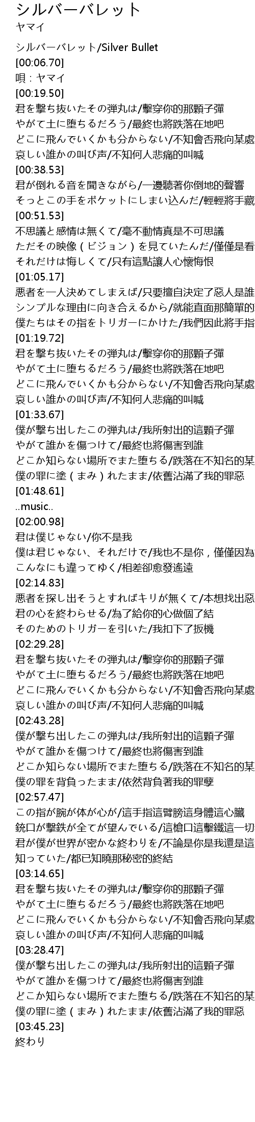 | [00:00.49] | シルバーバレット/Silver Bullet |