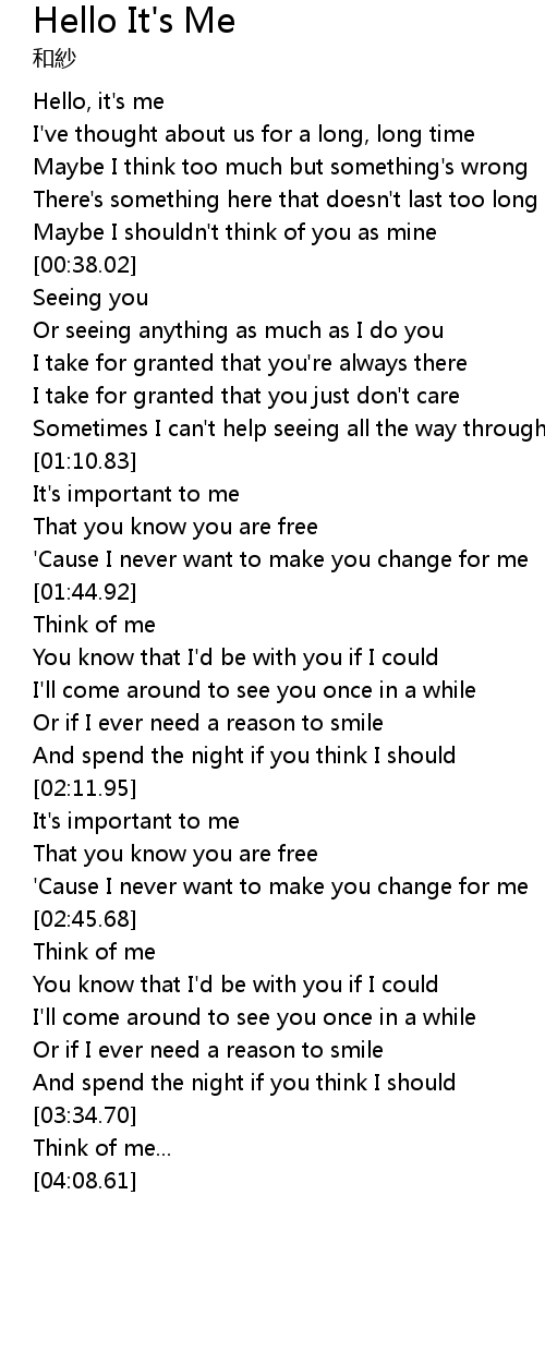 | [00:12.05] | Hello, it's me |