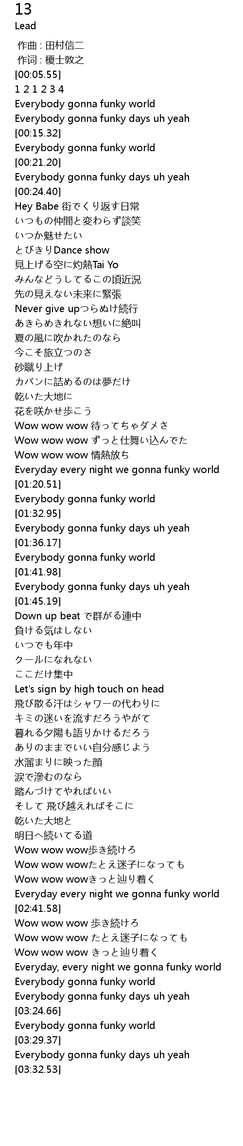 | [00:13.06] | Everybody gonna funky days uh yeah |