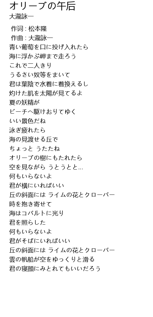 | Song | オリーブの午后 |
