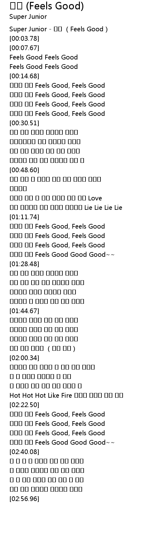 | [00:00.11] | Super Junior Feels Good |