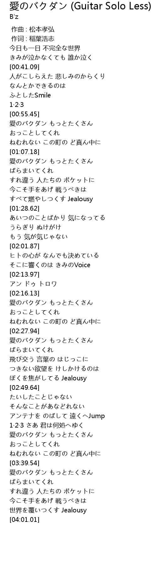 | [00:01.00] | 作词 : 稲葉浩志 |