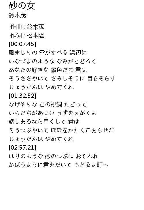 | [00:00.00] | 作曲 : 鈴木茂 |
