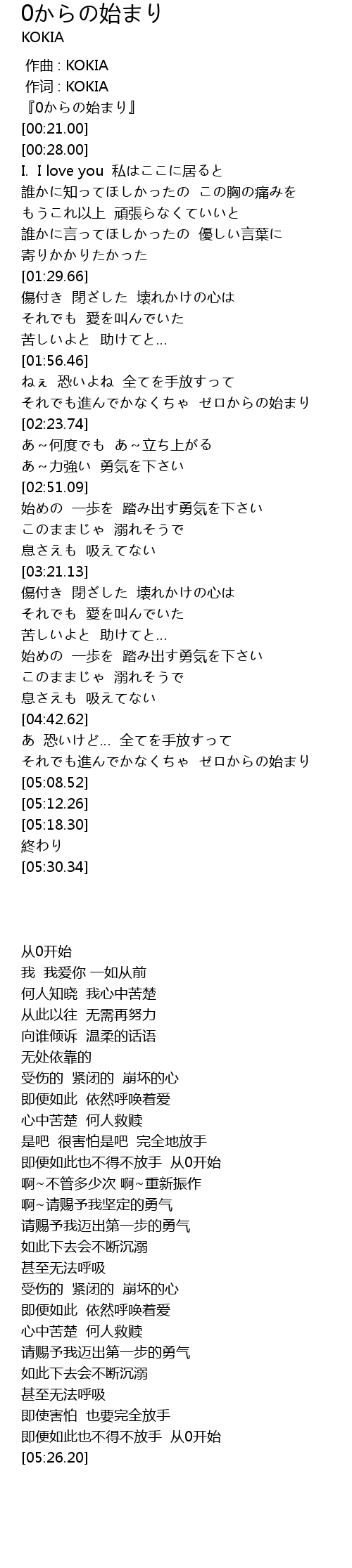 | [02:11.65] | それでも進んでかなくちゃ ゼロからの始まり |