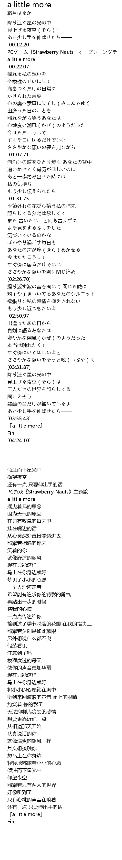 | [00:13.71] | PCゲーム「Strawberry Nauts」オープンニングテーマ |
