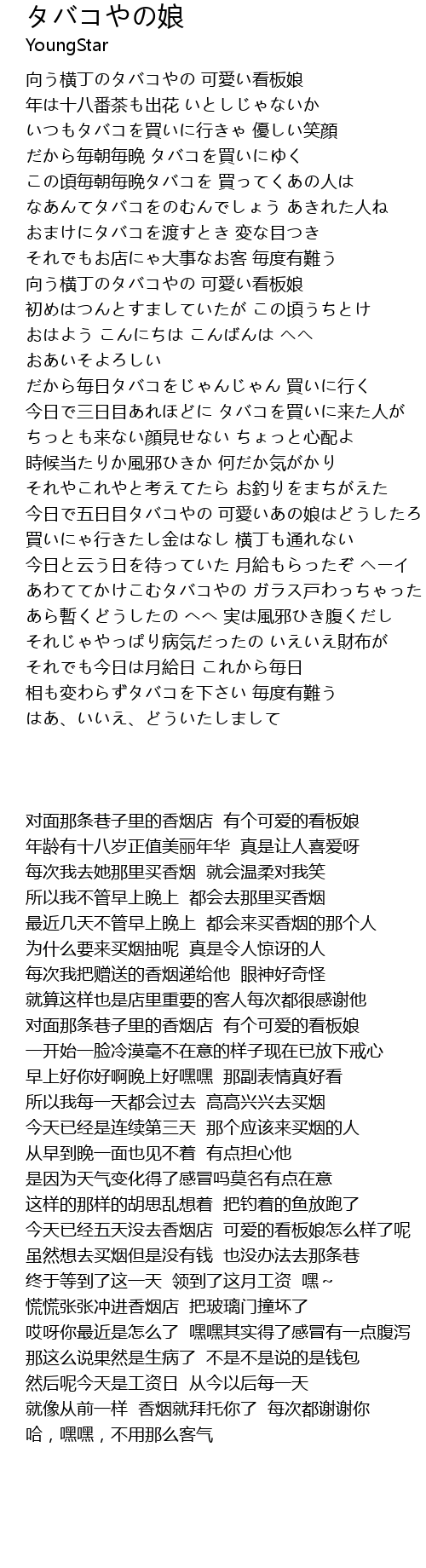 | [00:37.49] | だから毎朝毎晩 タバコを買いにゆく |