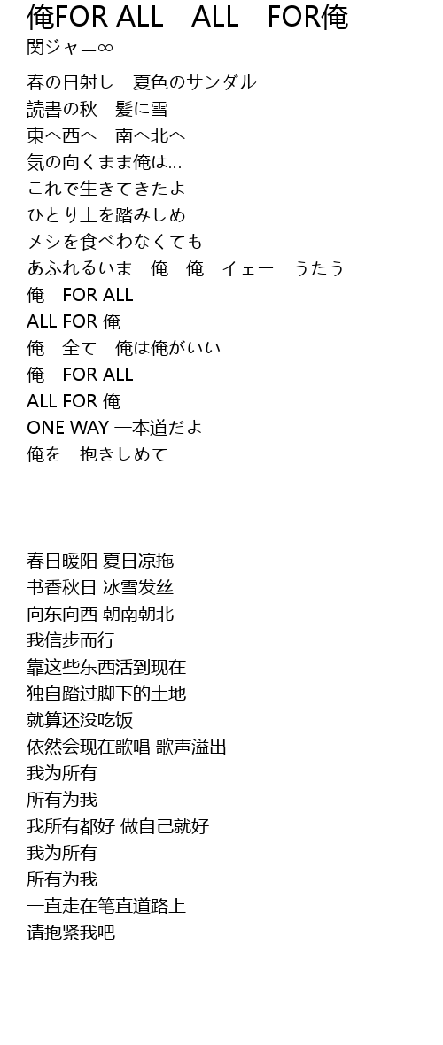 俺FOR ALL ALL FOR俺