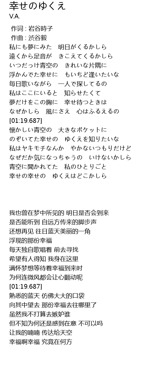 | [02:20.787] | 幸せの幸せの ゆくえはどこかしら |