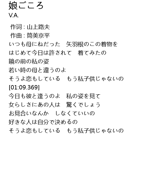 | [01:57.277] | そうよ恋もしている もう私子供じゃないの |