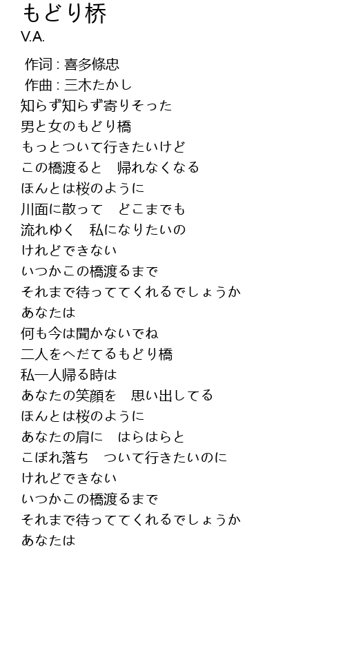 | [01:44.477] | 二人をへだてるもどり橋 |