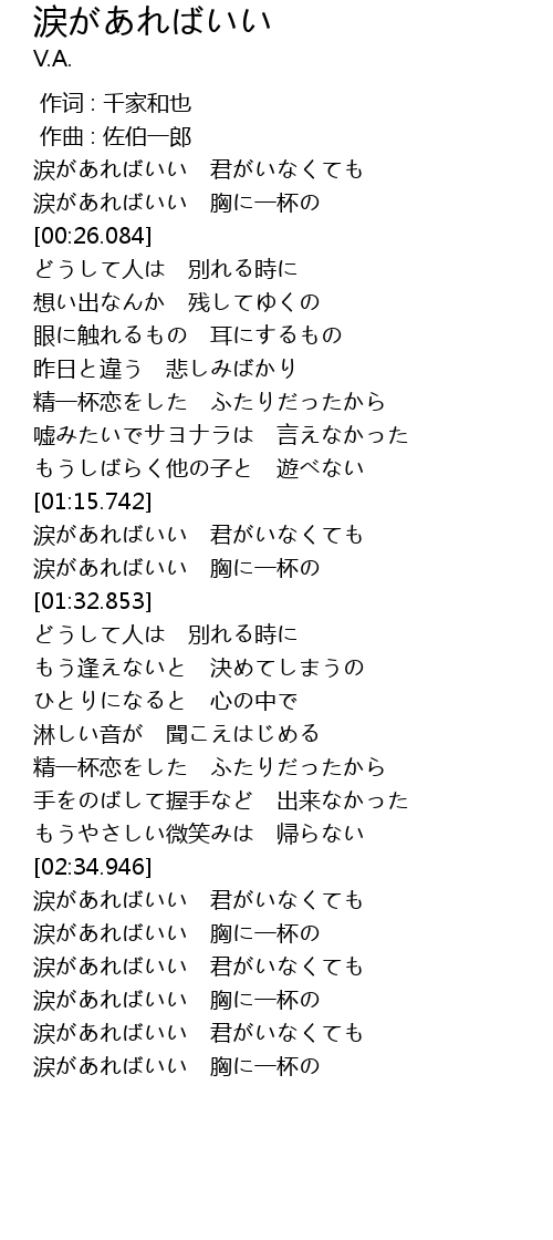| [03:04.542] | 涙があればいい 君がいなくても |