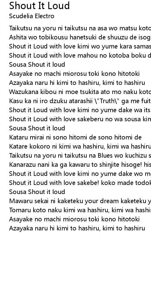 Shout it Loud with love sakeberu no wa sousa kimi dake da yo Shout it loud |