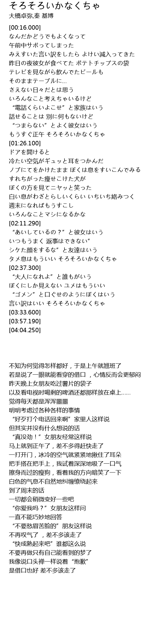 | [03:23.280] | 言い訳はいい そろそろいかなくちゃ |