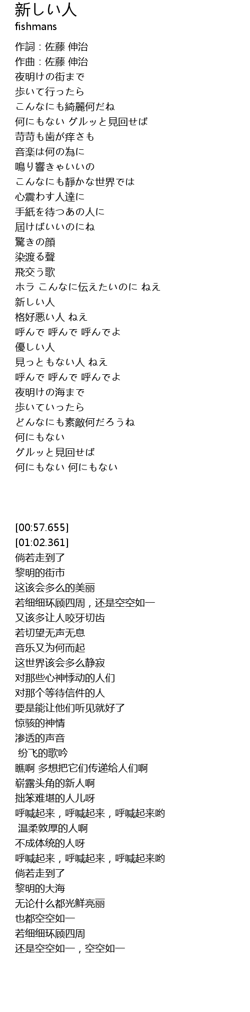 | [00:57.655] | 作詞:佐藤 伸治 |