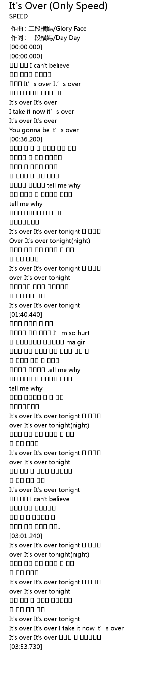 | [02:16.510] | over It's over tonight(night) |