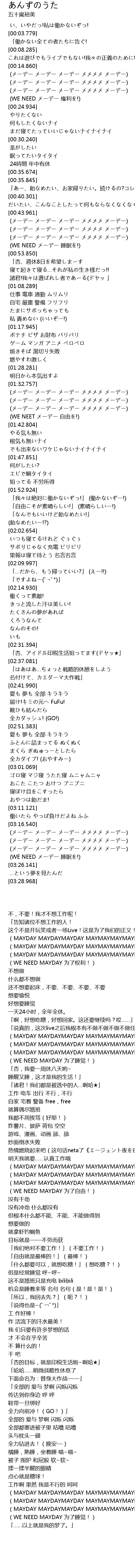 | [01:32.914] | (メーデー メーデー メーデー メメメメ メーデー) |