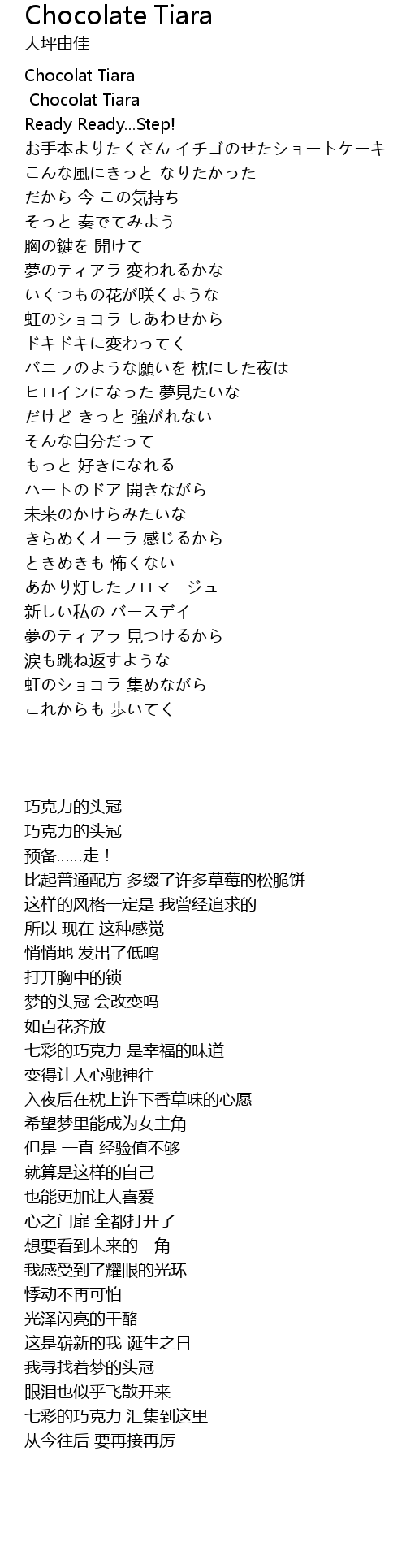 | [02:46.000] | 夢のティアラ 見つけるから |