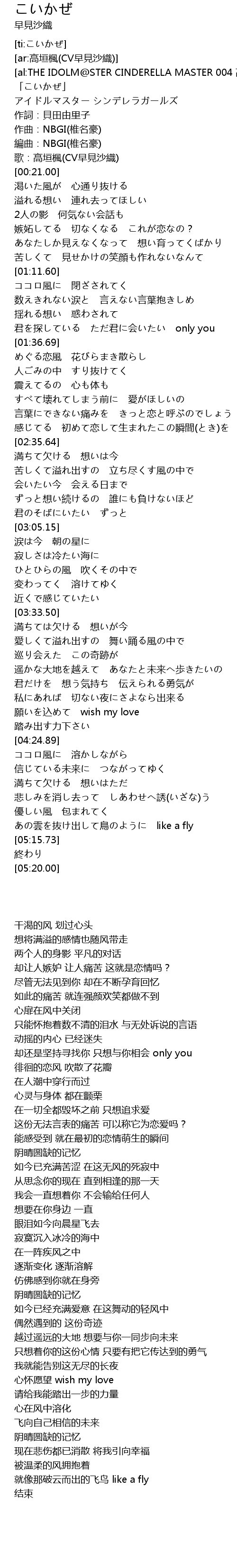 | [05:02.39] | あの雲を抜け出して鳥のように like a fly |