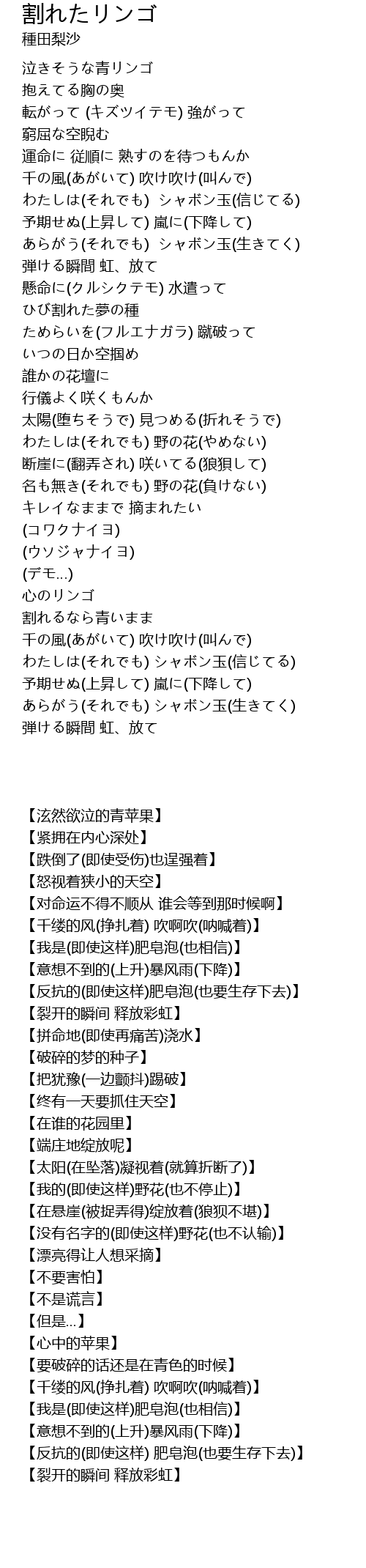 | [03:44.05] | あらがう(それでも) シャボン玉(生きてく) |