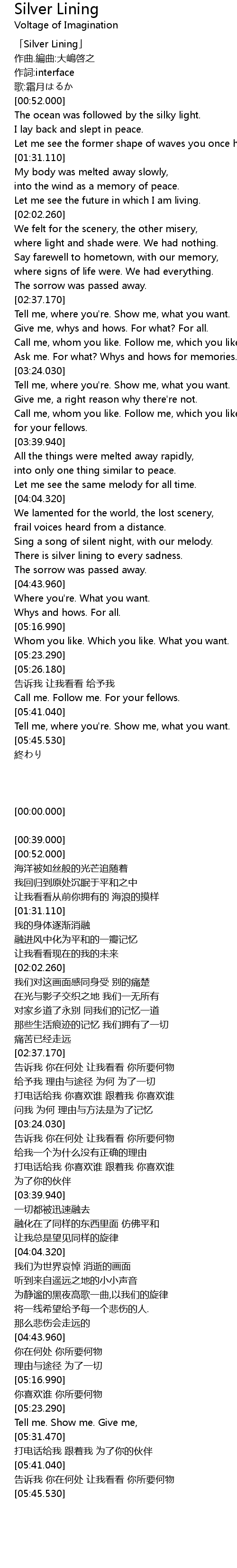 | [00:00.000] | 「Silver Lining」 |