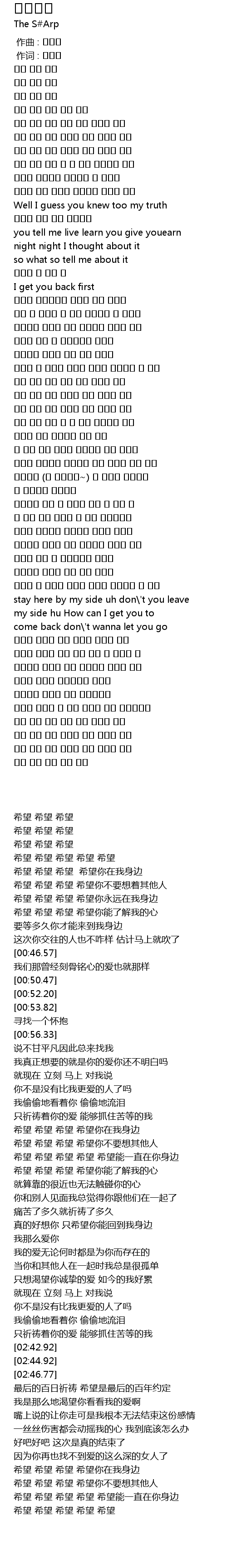 | [02:42.92] | stay here by my side uh don\'t you leave |