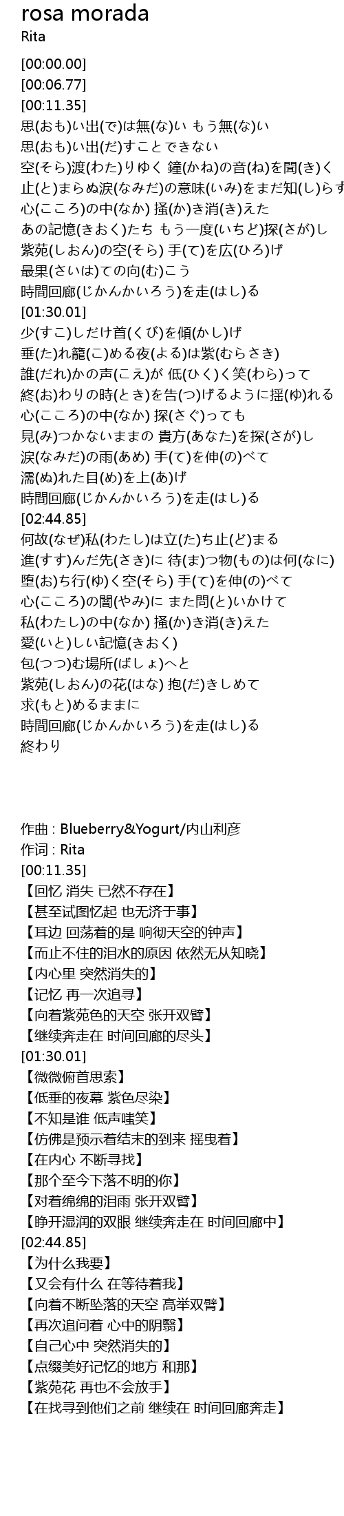 | [01:49.23] | 垂(た)れ籠(こ)める夜(よる)は紫(むらさき) |