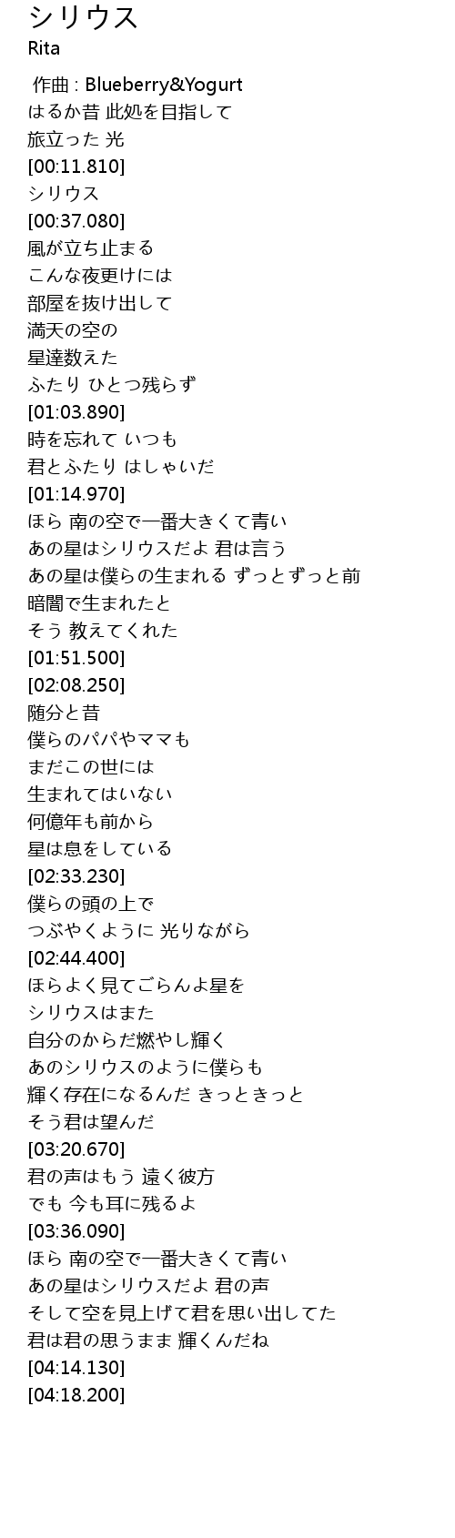 | [03:45.760] | あの星はシリウスだよ 君の声 |