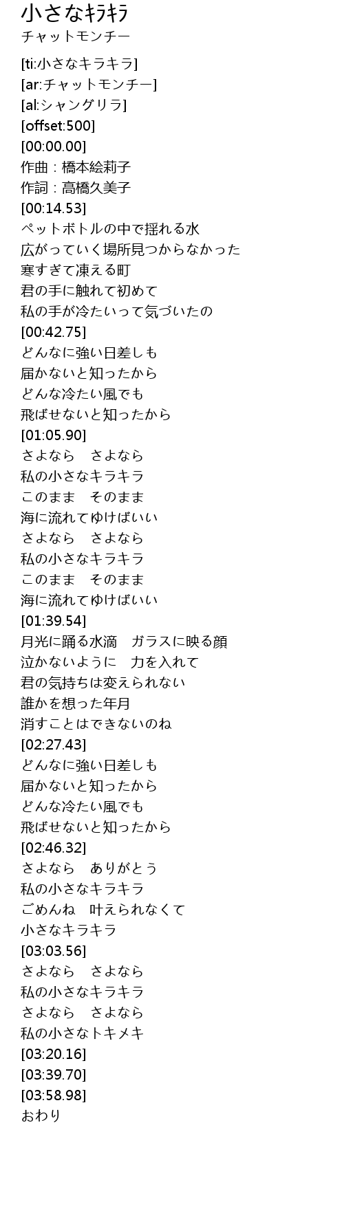 | [00:16.53] | ペットボトルの中で揺れる水 |