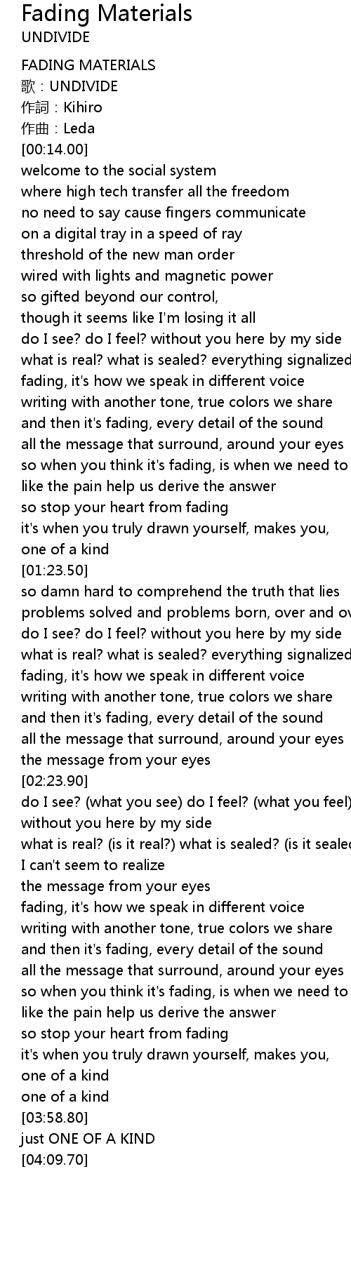 | [00:00.00] | FADING MATERIALS |