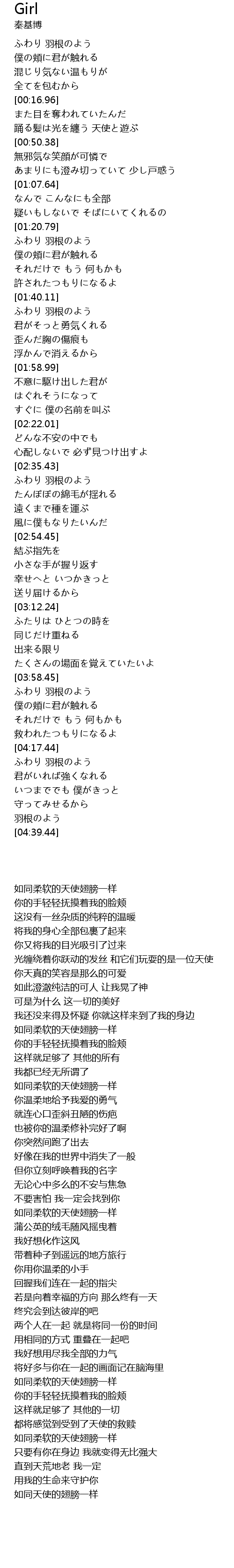 | [00:41.29] | 踊る髪は光を纏う 天使と遊ぶ |