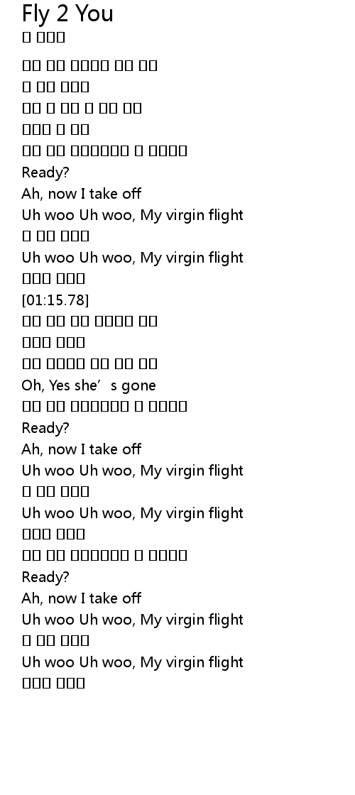 | [01:00.61] | Uh woo Uh woo, My virgin flight |
