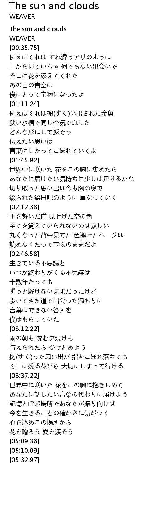 | [04:30.49] | 世界中に咲いた 花をこの胸に抱きしめて |