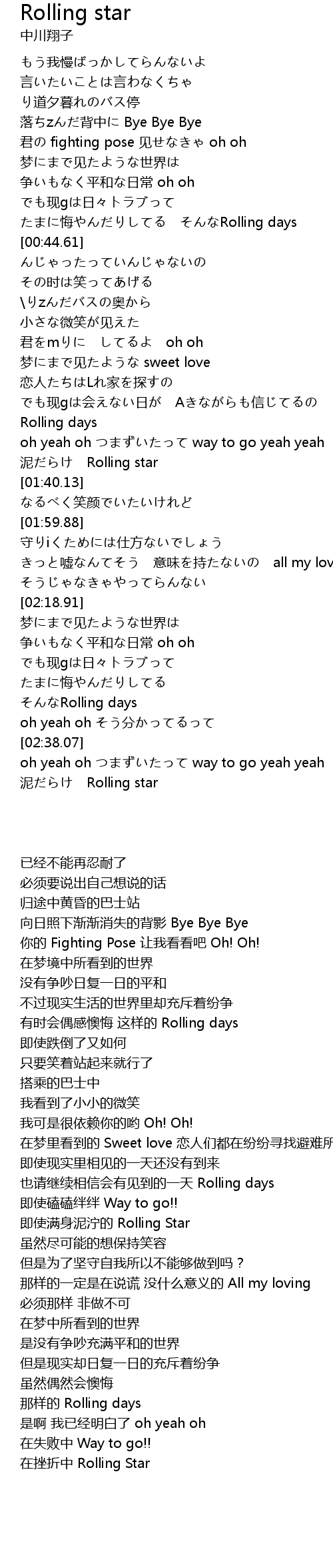 | [00:41.06] | たまに悔やんだりしてる そんなRolling days |