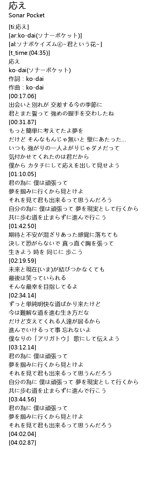 | [00:02.33] | ko-dai(ソナーポケット) |