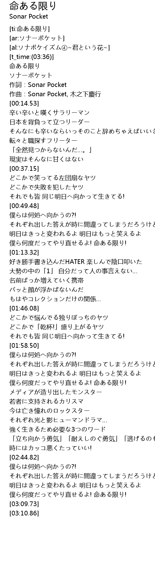 | [ti:命ある限り] | |