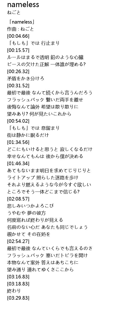| [00:00.66] | 「nameless」 |