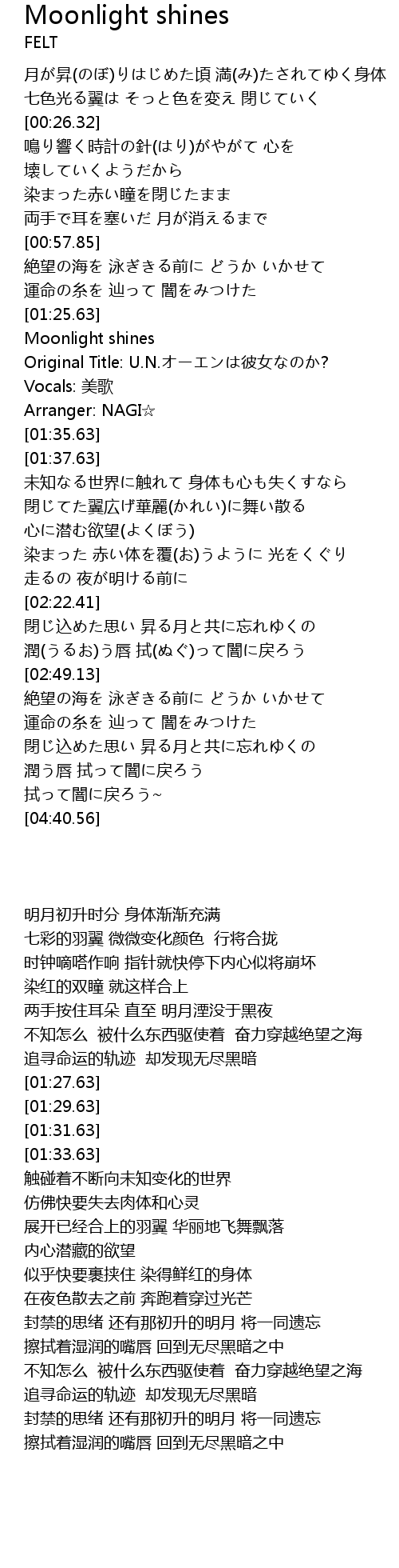 | [01:33.63] | Arranger: NAGI☆ |
