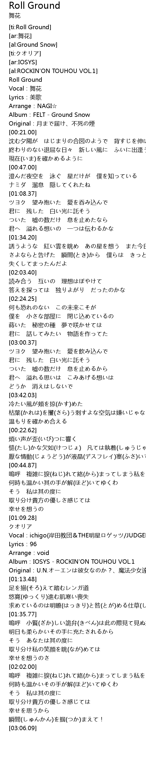 | [00:15.00] | Album: FELT Ground Snow |