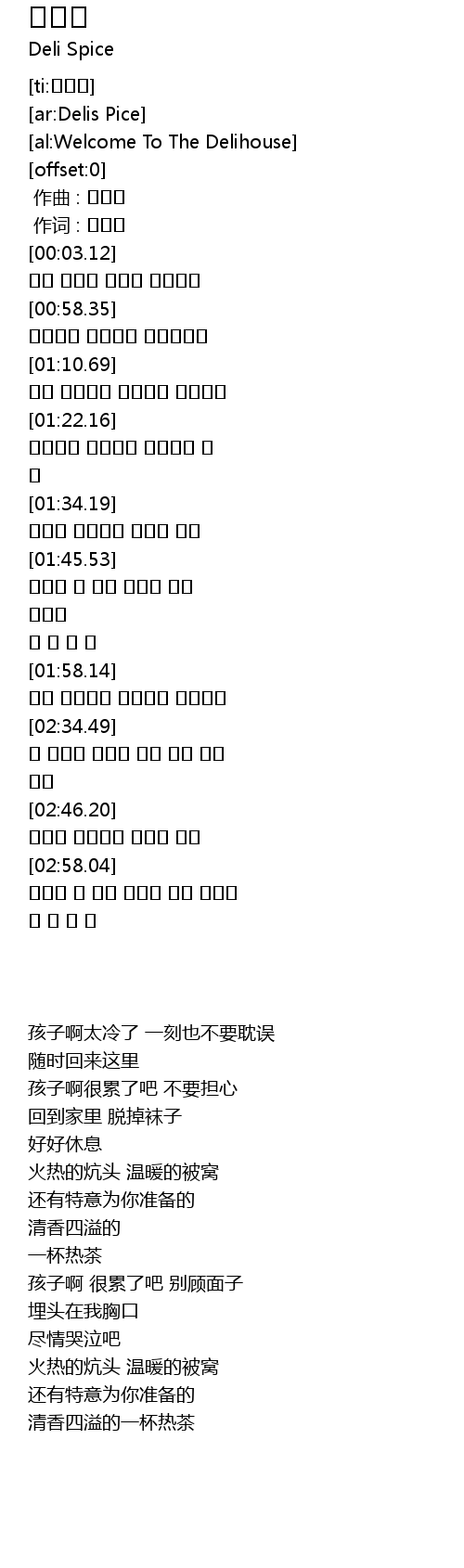 | [01:12.24] | 얘야 지쳤거든 걱정일랑 아예말고 |