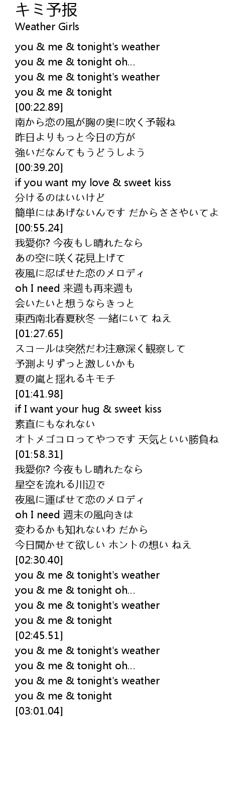 | [02:53.71] | you me tonight' s weather |
